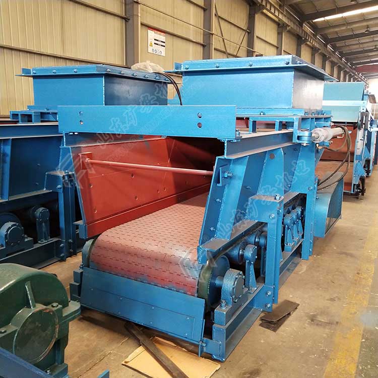 甲帶給料機動力采用電機擺線針輪減速機,其結(jié)構(gòu)緊湊,運轉(zhuǎn)平穩(wěn),調(diào)速范圍大,可實現(xiàn)無級調(diào)速;環(huán)形橡膠帶傳動,環(huán)形橡膠帶經(jīng)改向脹緊輪的拉緊裝置的調(diào)節(jié)可調(diào)整皮帶的松緊度和跑偏度,因采用了環(huán)形機構(gòu)了實現(xiàn)連續(xù)給煤不同與K型往復(fù)式給料機的單向給煤,大大的提高了工作效率并且采用了16Mn合金鑄造的鏈節(jié)作為工作面提高了設(shè)備的使用壽命并用尼龍棒銷聯(lián)接此結(jié)構(gòu)具備了很強的耐沖擊性。給料范圍大(0~500mm)此設(shè)備廣泛用于原煤端的給煤,由于生產(chǎn)效率高、工作性能穩(wěn)定,現(xiàn)市場占有率很高。